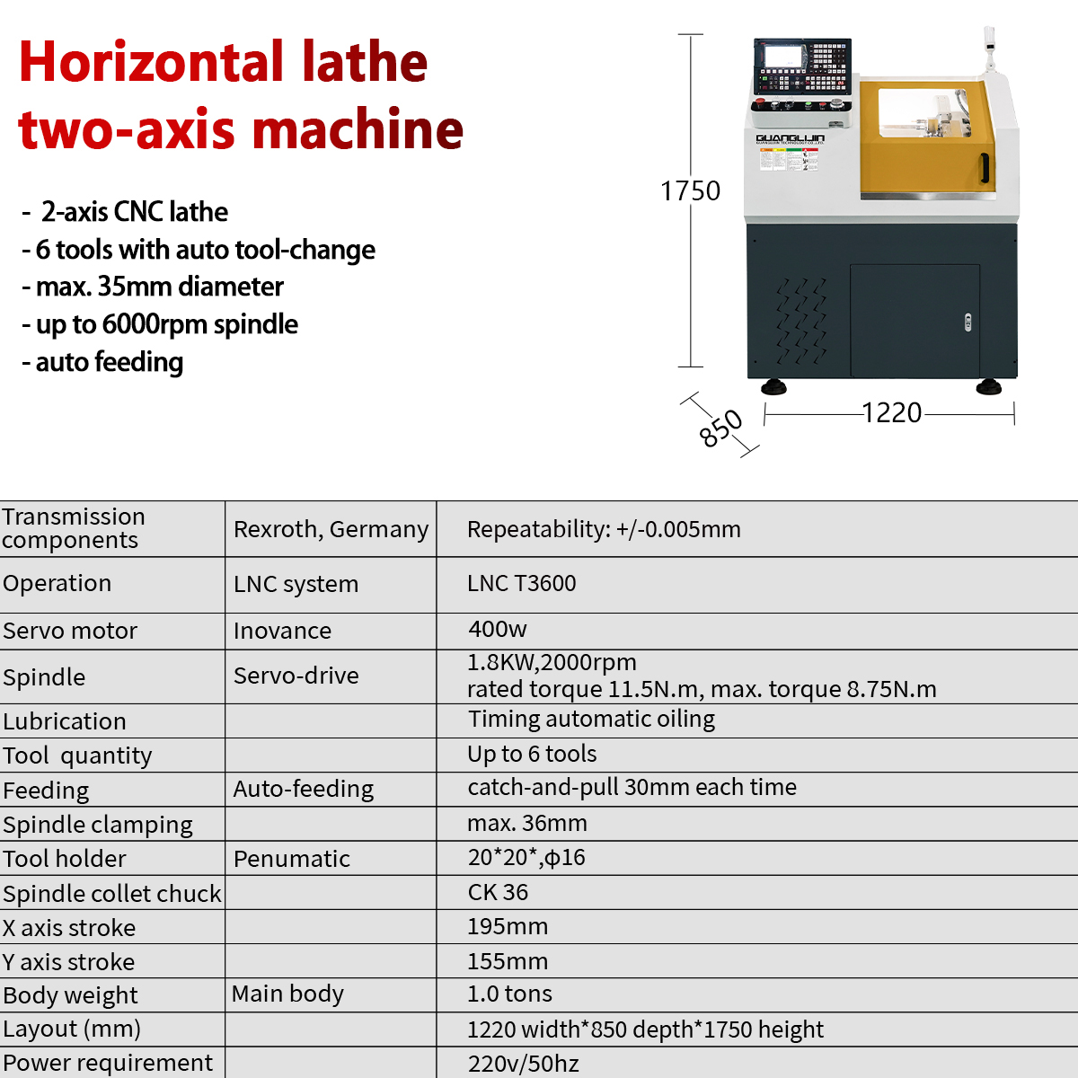 | 2 | Operation | LNC system | LNC T3600 |